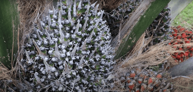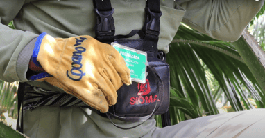 Primero, el polinizador recorre el área asignada buscando racimos para polinizar. Una vez que encuentra uno, desliza su tarjeta sobre el JACO, lo que le facilita el inventario de flores polinizadas al final de la jornada.