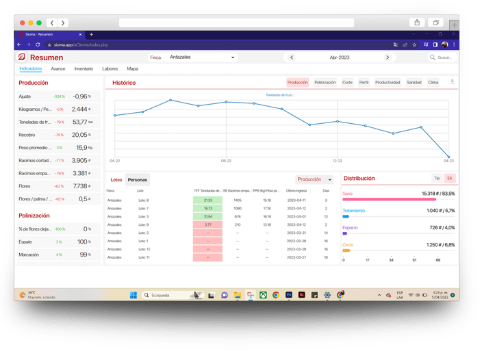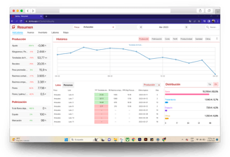 Você poderá consultar gráficos mês a mês com todos os dados relevantes sobre o desempenho de suas colheitas em nosso aplicativo móvel e na Web.